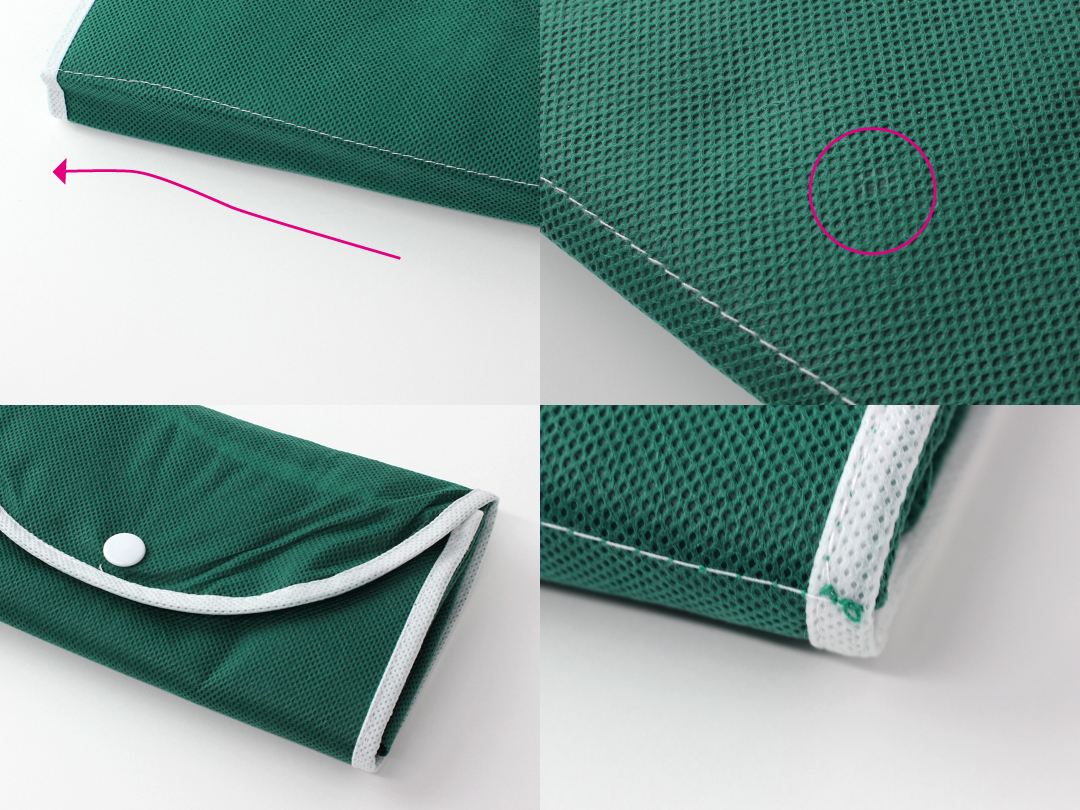 不織布製品は手作業で縫製することが多いため、ミシンの縫い目に多少のヨレが生じる場合がございます。